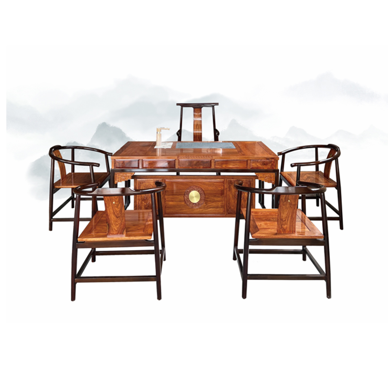 刺猬紫檀方正茶桌桌椅组合172*85*75/套